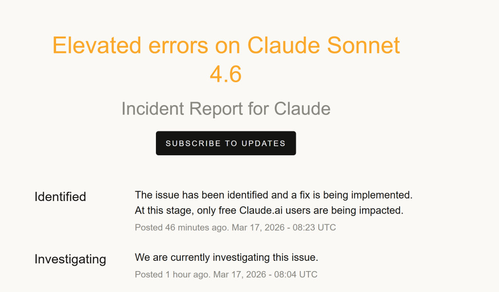Anthropic tarafından geliştirilen yapay zekâ sohbet asistanı Claude.ai hizmetinde yeni bir kesinti yaşandığı açıklandı. Paylaşılan olay raporuna göre, özellikle Claude Sonnet 4.6 sürümünde hata oranlarında artış tespit edildi.